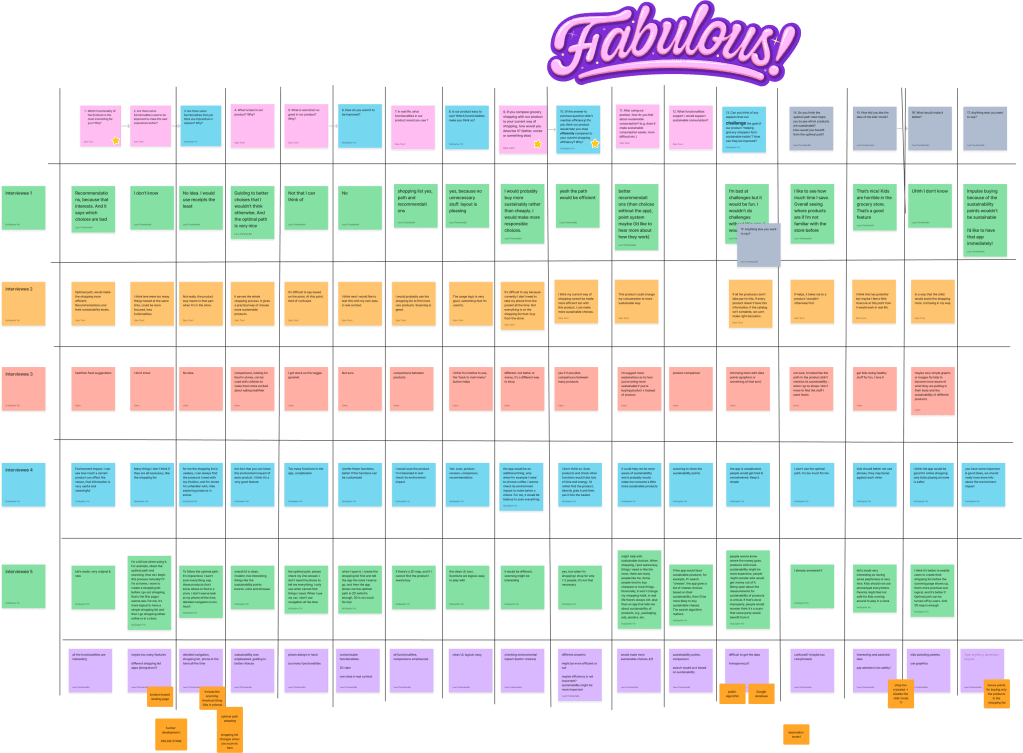 Second interview phase was conducted with the previous participants to confirm the findings from the first phase and to test the new hi-fi prototype. The conclusions were written down on the last row.
